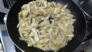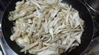 13- Quando derreter, adicione o alho e, logo em seguida, adicione o shimeji. Mexa bem.