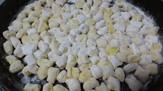 7- Corte as "bolinhas" com a ajuda de uma faca e reserve num recipiente com farinha para que não grudem.