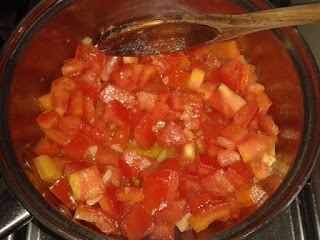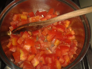 4- Adicione o tomate picado, mexa bem e cozinhe por uns dois minutos. Tempere com sal a gosto.
