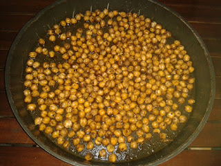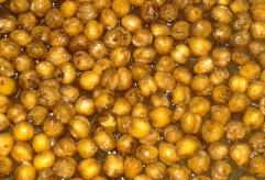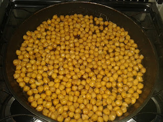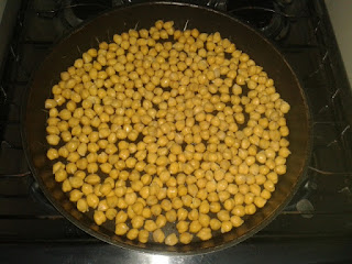 2- Escorra bem e coloque o grão de bico numa assadeira.