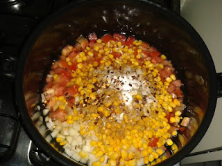 7- Adicione o caldo de legumes numa quantidade suficiente para cobrir o arroz ficando cerca de um dedo acima da linha dele, mexa um pouco (Sempre mexa o arroz após adicionar o caldo) e deixe cozinhando em fogo baixo.