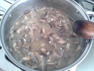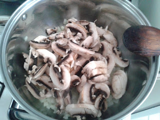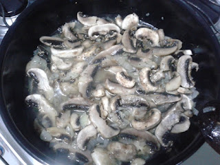 4- Adicone o cogumelo, mexa bem e refogue por um instante.