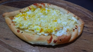 a nossa "viagem" de hoje vai ser para um destino bem diferente da Europa Oriental. Um país que faz fronteiras com a Rússia, Turquia, Armênia, Azerbaijão e com o Mar Negro. Já adivinhou? Vamos dar um pulo na Geórgia para apresentar um dos seus pratos típicos. A iguaria é uma espécie de pão recheado e vamos apresentar a variante conhecida como "ajaruli" ou "acharuli" de Adjara com a forma de uma gôndola servido com queijo e ovo. Espero que vocês gostem do Khachapuri!