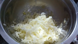 1- Descasque as 3 batatas. Reserve duas batatas e corte a última batata em cubos grandes e leve ao fogo com água suficiente para cobri-la. Retire do fogo quando já estiver bem mole (Teste com um garfo).