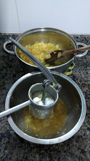 5- Num recipiente, amasse a batata cozida. Misture o ovo, o leite e o sal para formar uma massa.