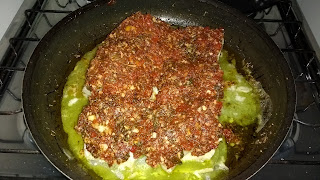 1- Coloque numa assadeira um pouco de azeite, as sementes de erva doce, sal e pimenta do reino a gosto.