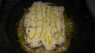 7- Coloque a farofa de pão, regue com um pouco de azeite e polvilhe alecrim desidratado.