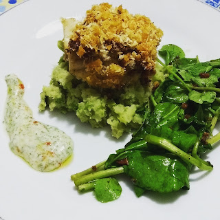 o post de hoje fecha uma trinca de receitas que estão presentes no livro "30 Minutos e Pronto" do Jamie Oliver completando umas das opções de menu. A receita de hoje será o prato principal, que é um bacalhau com uma crosta baseada em tomate seco, pão e especiarias, e que pode ser muito bem acompanhado pelo purê de ervilhas, batatas e brócolis e pela salada de rúcula, agrião, bacon e balsâmico. Pela variedade de ingredientes e quantidades, a receita sofreu algumas adaptações, mas a sua essência está aí representada. Espero que vocês gostem!