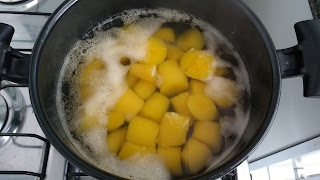 2- Quando a mandioquinha já estiver bem macia (Teste com um garfo!), retire do fogo e escorra.