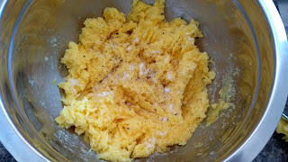 3- Ainda quente, amasse a mandioquinha e reserve (É preciso esperar esfriar antes do preparo da massa).