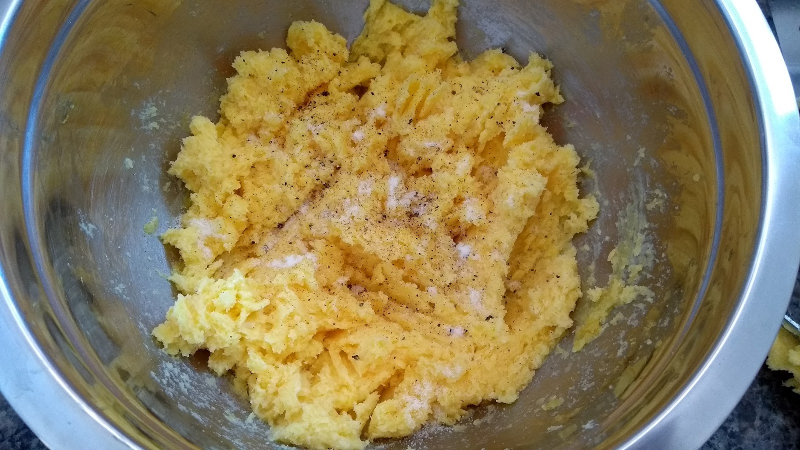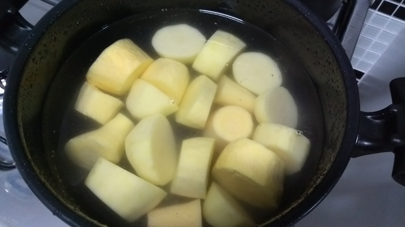 3- Ainda quente, amasse a mandioquinha e reserve (É preciso esperar esfriar antes do preparo da massa).