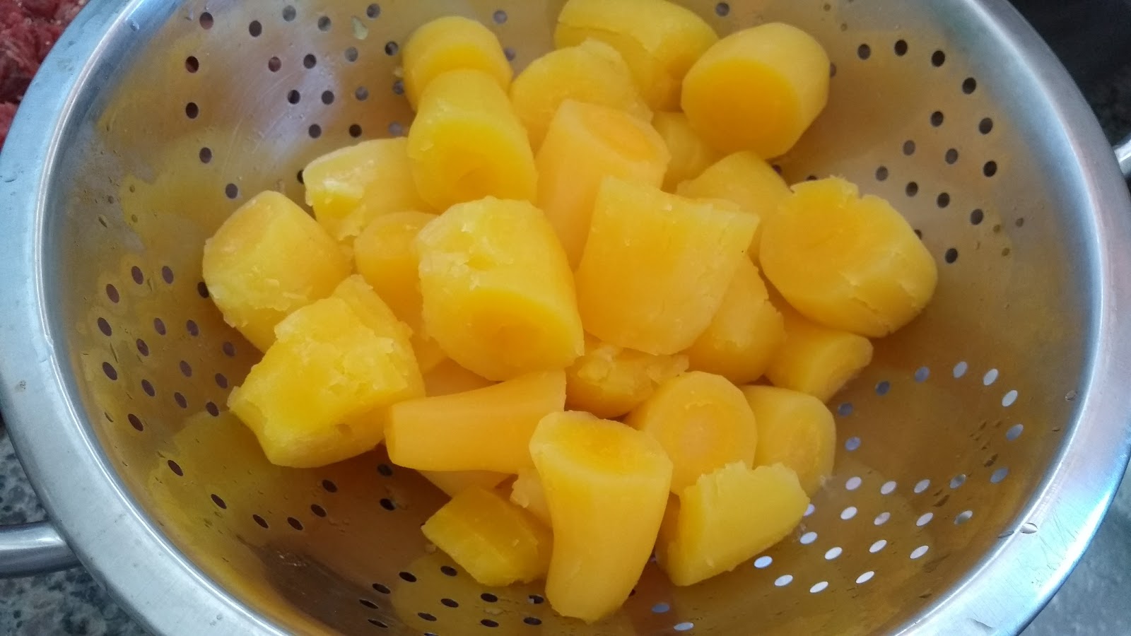 2- Quando a mandioquinha já estiver bem macia (Teste com um garfo!), retire do fogo e escorra.