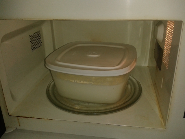 4- Tampe o recipiente e deixe num ambiente ao abrigo do sol e vento (por exemplo, forno ou microondas (Desligados!)) por pelo menos 12 horas.