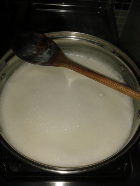 1- Coloque o leite numa panela e ferva.