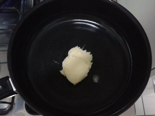 3- Leve uma panela ao fogo e coloque um pouco de manteiga.