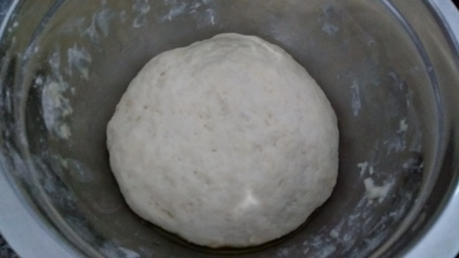 4- Coloque um fio de azeite no fundo do recipiente, cubra o recipiente (com plástico filme ou um pano de prato) e deixe a massa crescer por cerca de 1 hora num ambiente aquecido e protegido do vento.