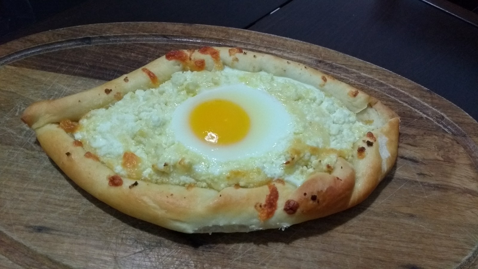 a nossa "viagem" de hoje vai ser para um destino bem diferente da Europa Oriental. Um país que faz fronteiras com a Rússia, Turquia, Armênia, Azerbaijão e com o Mar Negro. Já adivinhou? Vamos dar um pulo na Geórgia para apresentar um dos seus pratos típicos. A iguaria é uma espécie de pão recheado e vamos apresentar a variante conhecida como "ajaruli" ou "acharuli" de Adjara com a forma de uma gôndola servido com queijo e ovo. Espero que vocês gostem do Khachapuri!